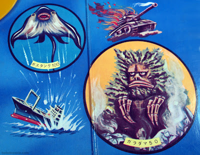 It was never good news in this series, where people had to battle many different monsters, like a turtle-like moster resembling Gamera (ガメラ) seen on the front of the box, and Garamon (ガラモン), seen in the picture below.