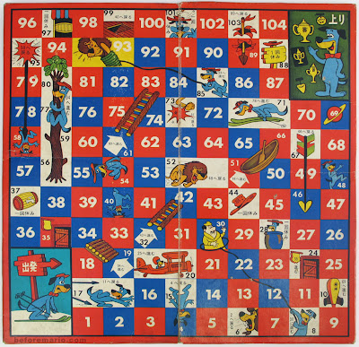 Most of these board games were using Disney figures, but other characters were used as well. Like the Huckleberry Hound Game (珍犬ハックル ゲーム) shown here, produced under license from US cartoon company Hanna-Barbera.